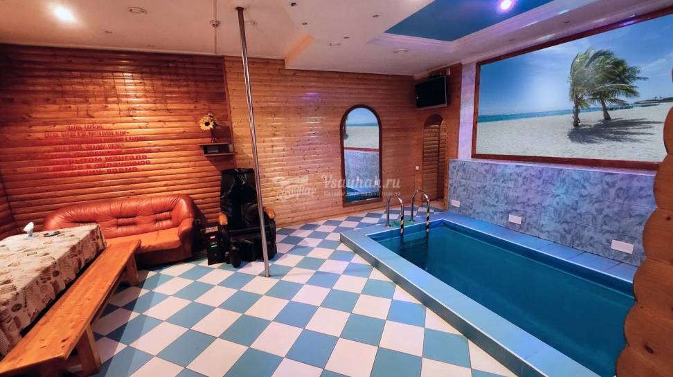 После посещения парной гости сауны смогут остудить тело и взбодрить дух в прохладном бассейне, вода в котором фильтруется с помощью современной системы очистки, а затем переместиться в комфортный гостевой зал с мягкой мебелью и обеденным столом, чтобы насладиться общением с близкими людьми.