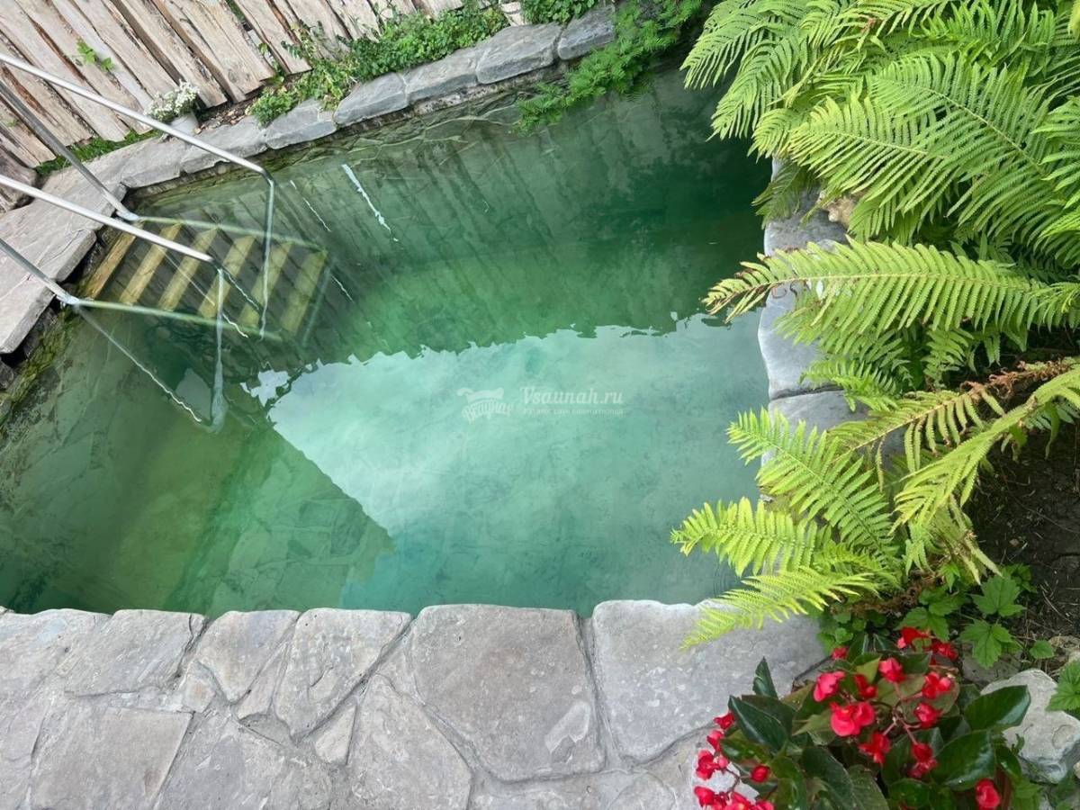 Баня Шале самая большая, есть камин в комнате отдыха, панорамное окно с видом на Ботанический сад и купель с родниковой водой.